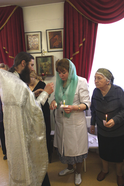 На следующий день, в Лазареву субботу, в пансионате была отслужена Божественная Литургия, за которой все приступившие к Таинству Соборования, а также все желающие имели возможность поисповедоваться и приступить к Св. Причастию.
