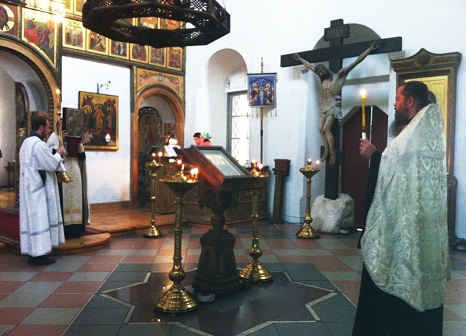Полиелей русским Преподобным отцам совершил исполняющий обязанностями благочинного Андреевского монастыря игумен Дамиан в сослужении настоятеля храма Святой Великомученицы Анастасии Узорешительницы в Теплом Стане, помощника управляющего Юго-Западным викариатством г. Москвы по церковной благотворительности и социальному служению иерея Александра Ковтуна.